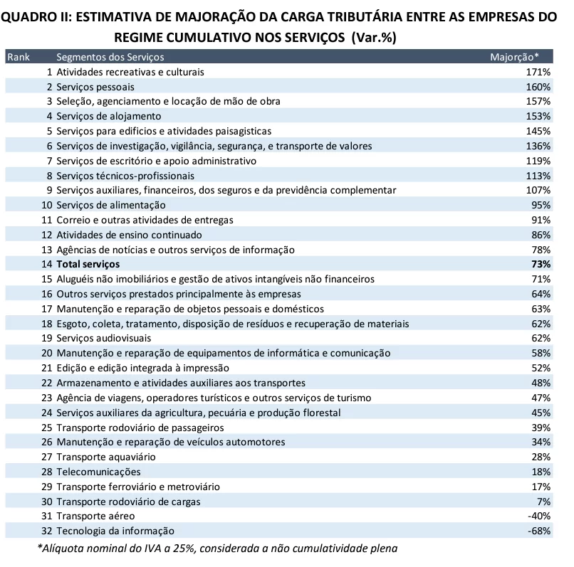 De acordo com o estudo da CNC, o setor de serviços, que representa uma parcela significativa da força de trabalho no Brasil, deve sofrer um aumento considerável na carga tributária. Estima-se que a carga média de impostos nesse setor aumente em 73%. Isso pode ter sérias consequências para as empresas de serviços e, consequentemente, para o emprego.
